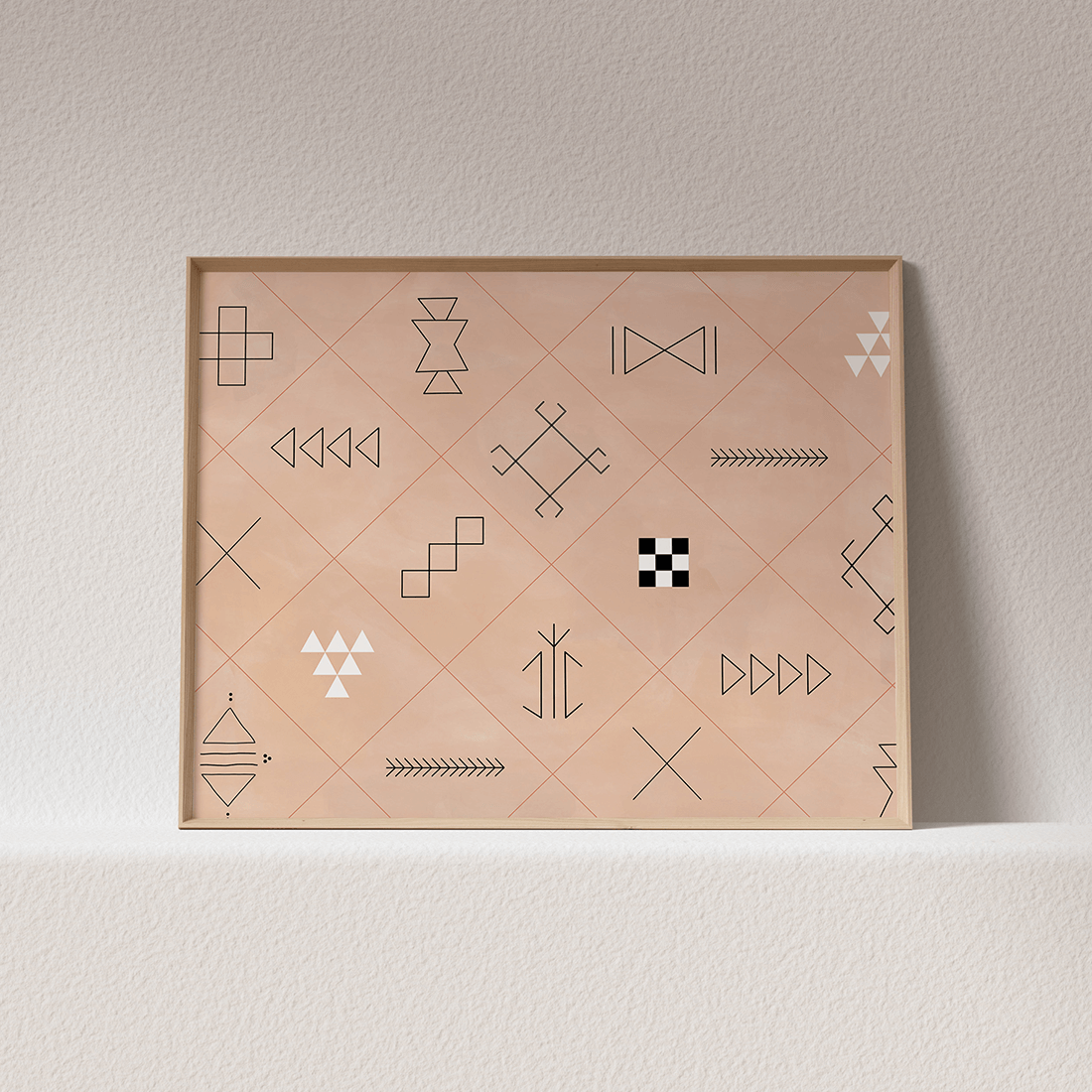 Graphical illustration with geometric shapes painted in burnt orange shades. Original artwork by The Print Republic perfect to match with any poster from our “Moroccan Summer” collection.