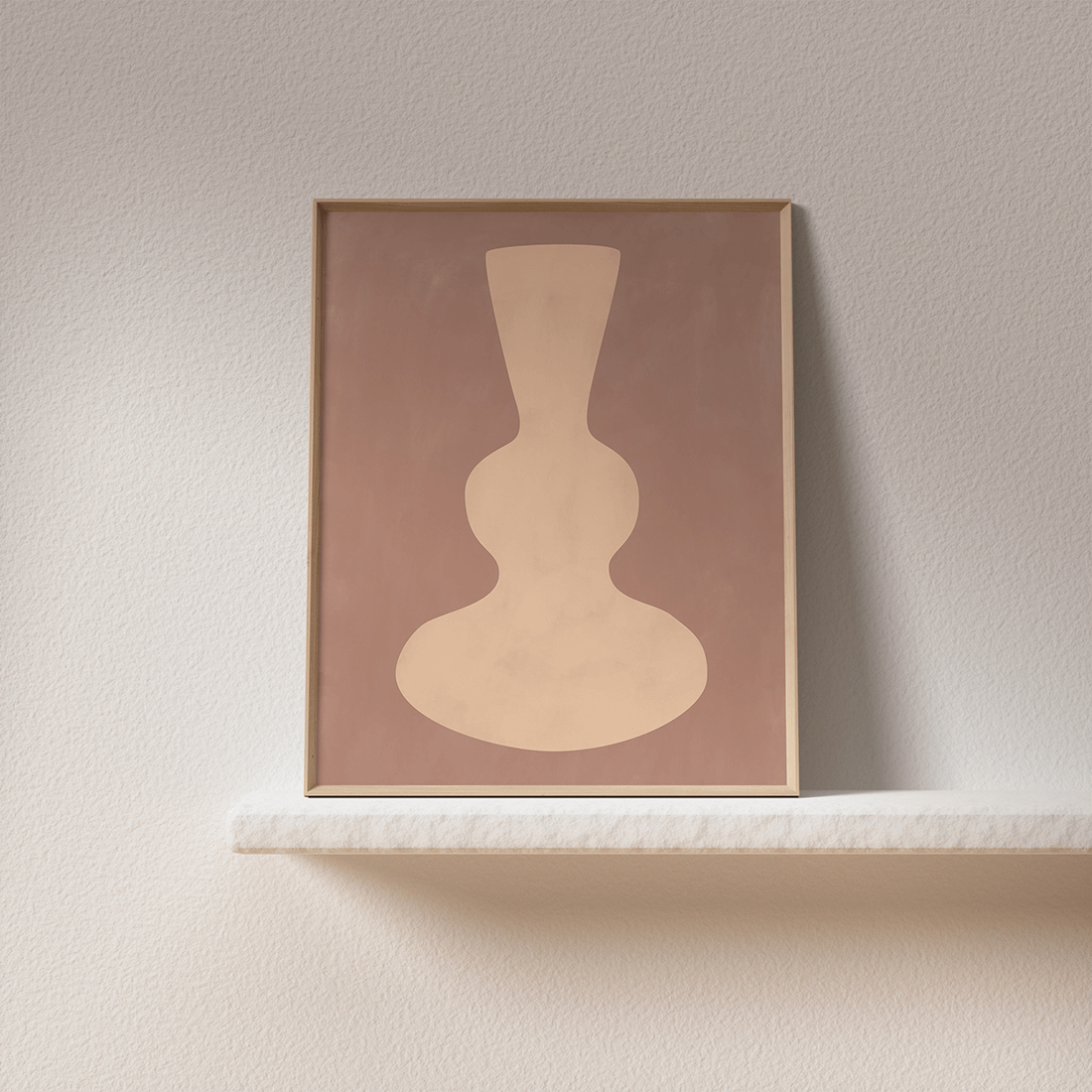 Illustration with a hand drawn terracotta ceramic vase on a soft brown background. Perfect to match with more graphical posters as well as Ceramic Vase Poster No.1 and No.2.
