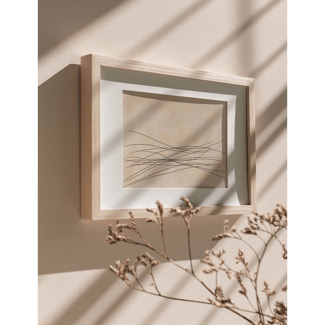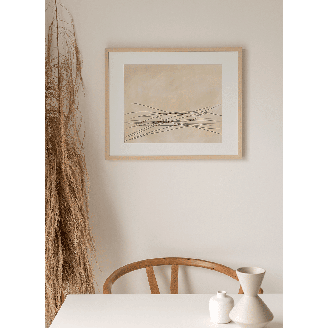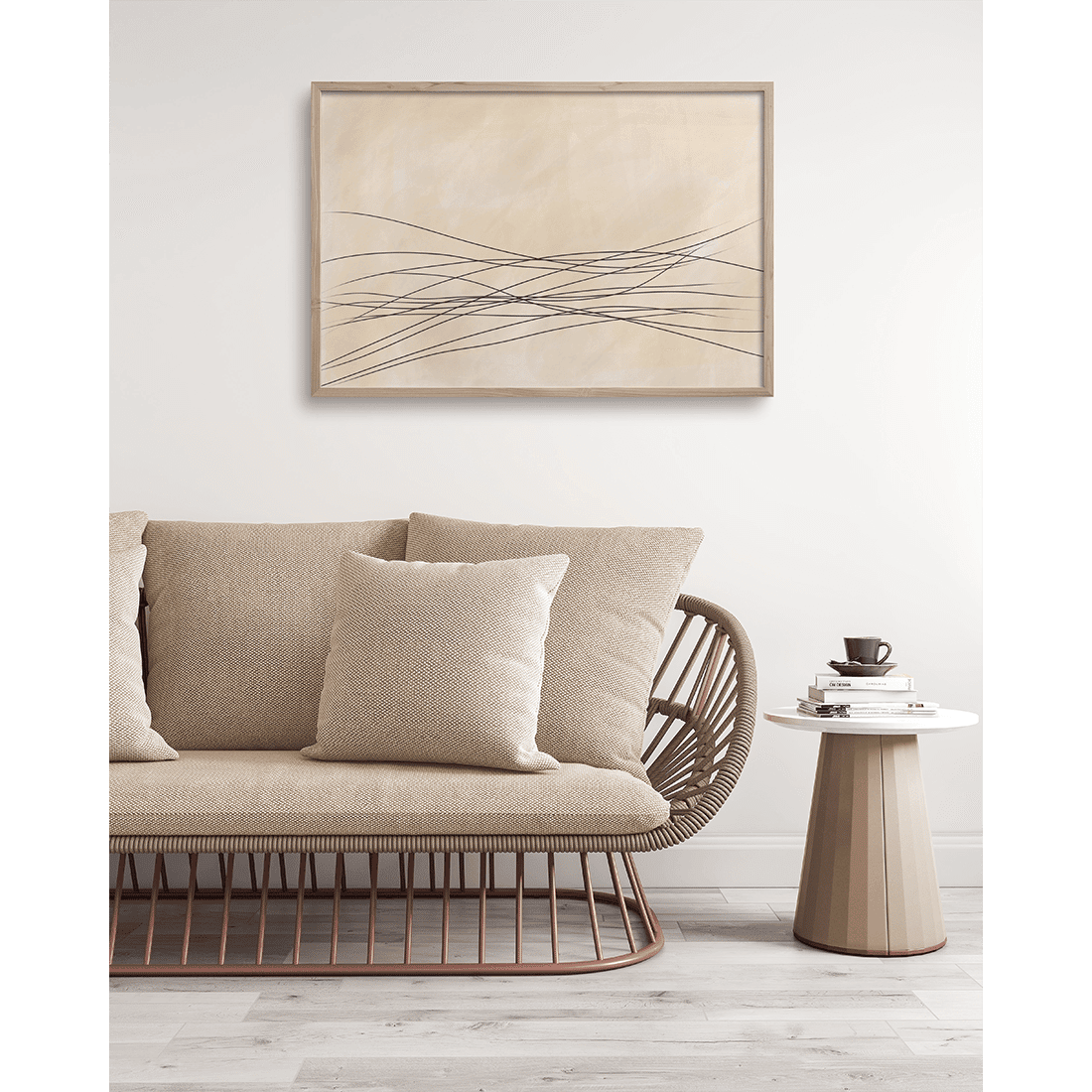 Abstract painting with overlapping lines in black on a beige textured background. Give your home a makeover and add some modern abstract art!